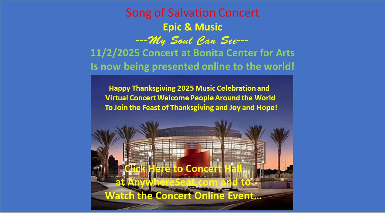 | Song of Salvation Concert-Epic & Music "Program", Please Click Here. Virtual Concert Ticket Price: $10 |